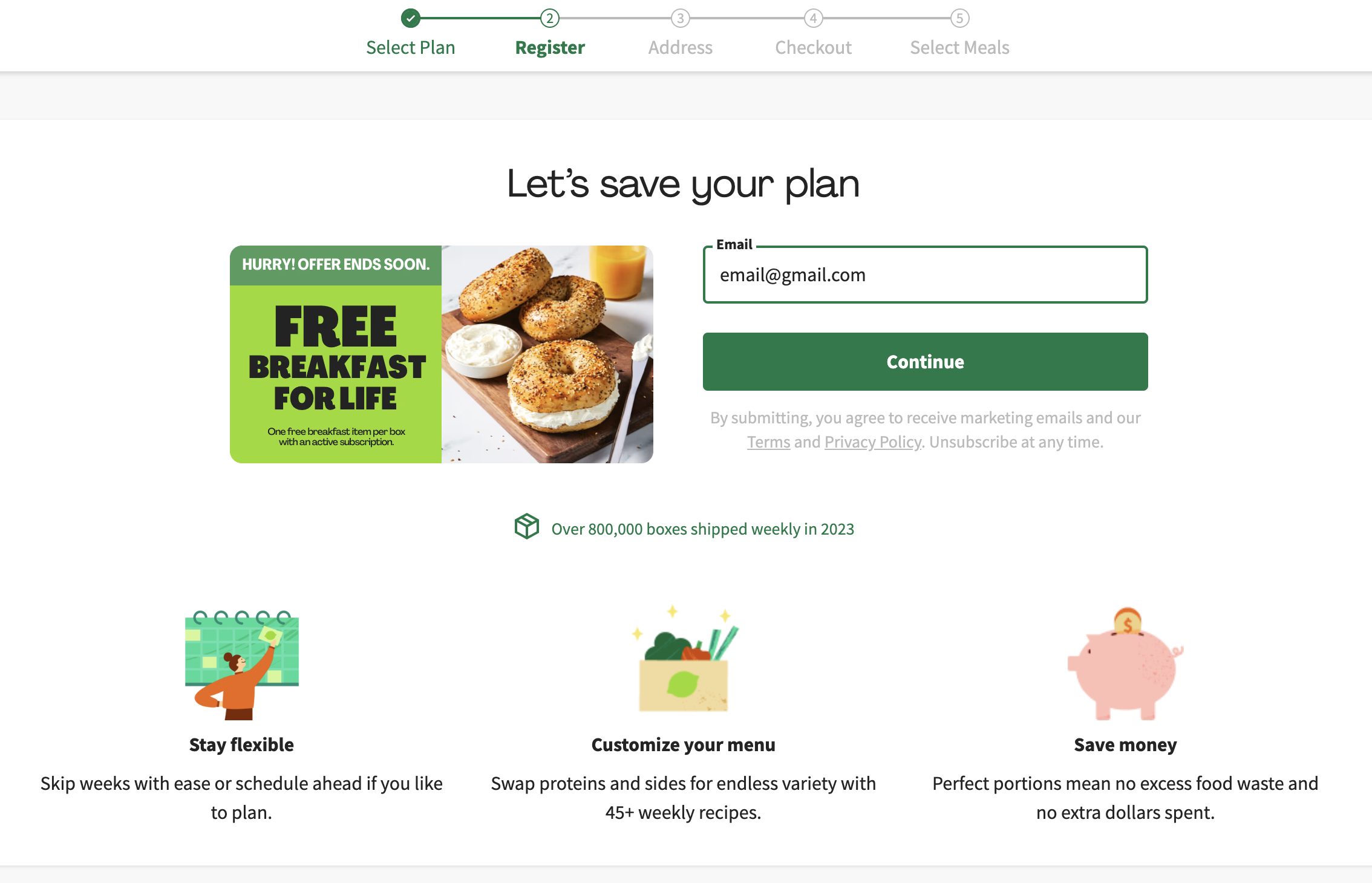 I also liked the Hello Fresh meal plan building experience. It was a good example of a much more to-the-point experience that still manages to bring some customization and delight to the experience.